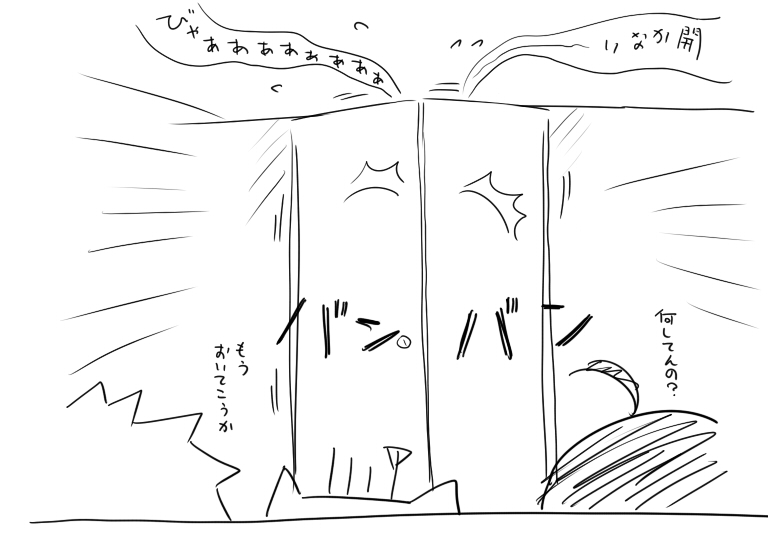洗面所に閉じ込められるマコトさんの図